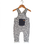 JARDINEIRA MALHA LEVE CO ESTAMPA DE ONCINHA PRETO E BRANCO. BOLSO FRONTAL PRETO. ALÇAS REGULÁVEIS COM BOTÕES EXTRAS.