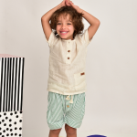 Bermuda em Tecido de Algodão Leve. Bolsos Frontais. Elástico Interno. Botões e laço decorativo.