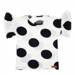 Blusa em Malha de Viscose super Leve com estampa de bolotas. Detalhe de franzido nas mangas.