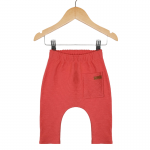 CALÇA SARUEL EM MOLETINHO ROSA COM TEXTURA. DETALHE DE BOLSO FRONTAL