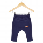 CALÇA SARUEL EM MOLETOM MARINHO . DETALHE DE BOLSO FRONTAL CANGURÚ