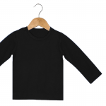 CAMISETA EM ALHA DE ALGODÃO COM BOLSO FRONTAL COR PRETO. ABERTURA NO DECOTE NOS TAMANHO E 1A2ANOS E 2A3ANOS