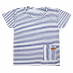 Modelagem Oversized. Camiseta em Malha de Algodão, com Bolso Frontal. Abertura no Decote com Botão de pressão nos tamanhos 1 e 2 anos.
