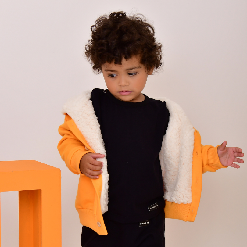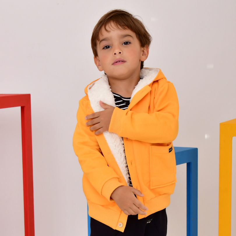 Moletom 100% algodão. Bolso e Capuz. Detalhes Em Ribana. Abertura Frontal com Botões de Madeira. |