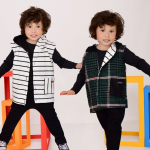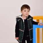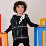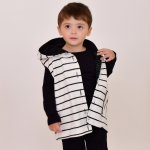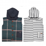 | Lado 1 :Tecido Plano 100% Algodão Em Flanela Xadrez Verde e Telha. Bolso e Capuz Preto. Lado 2: Moletinho em Listras Branco com Preto |