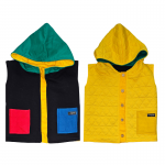 | Reversível, 2 em 1. Lado A em Suedine Preto com Detalhes Contrastantes. Lado B em Malha Matelassê Amarelo. Com Capuz e Abertura Frontal com Botões e Caseados. Bolsos Frontais |