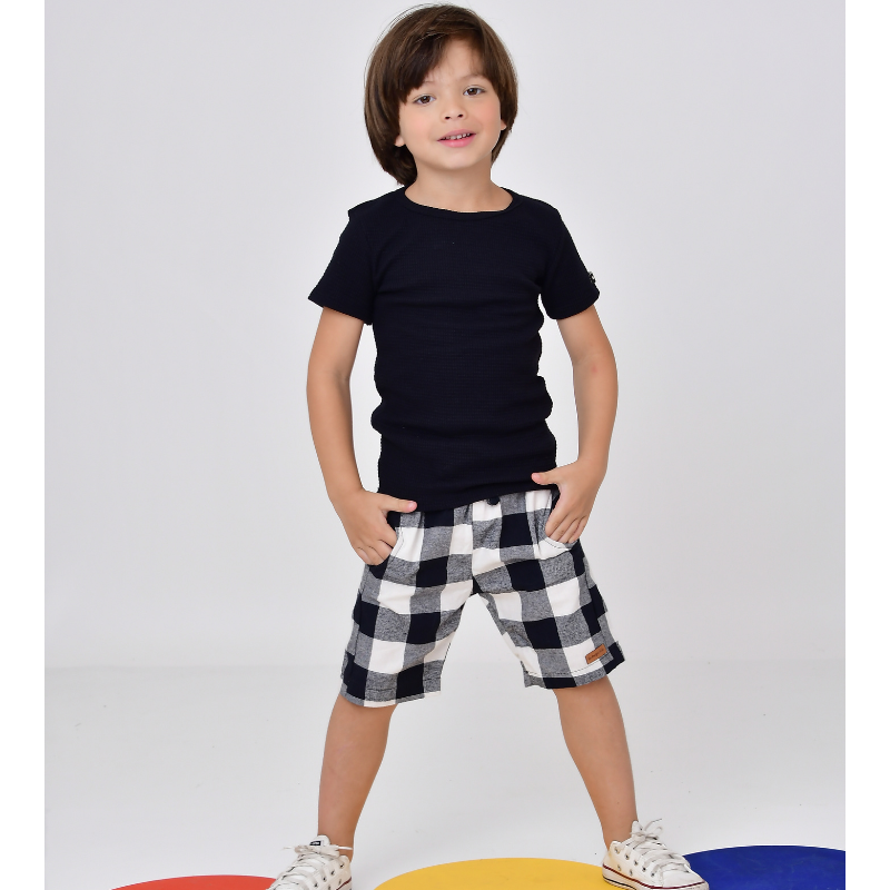 Conjunto Bermuda Xadrez + Camiseta Preta