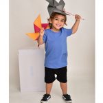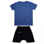 Conjunto de duas Peças. Camiseta em malha de algodão com Bolso Frontal. (Abertura no Decote nos tamanhos 1 e 2 anos. Bermuda em Moletom de Algodão com