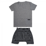 Conjunto de duas Peças. Camiseta em malha de algodão com Bolso Frontal. (Abertura no Decote nos tamanhos 1 e 2 anos. Bermuda em Moletinho Leve com Bolso Frontal. Elástico Interno