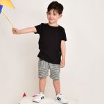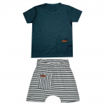 Conjunto de duas Peças. Camiseta em malha de algodão com Bolso Frontal. (Abertura no Decote nos tamanhos 1 e 2 anos. Bermuda em Moletom de Algodão com Bolso Frontal. Elástico Interno