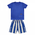 Conjunto Camiseta Royal + Bermuda Listras Azuis