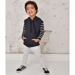 | Conjunto 2 Peças. Calça em Moletom Mescla Claro com Bolso Cangurú e Colete em Moletinho com Bolso Cangurú |