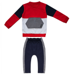 | 2 peças. Calça em Moletm, modelagem Saruel com Recortes Laterais. Blusão com Recortes Contrastantes e bolso Cangurú. Detalhes em Ribana |