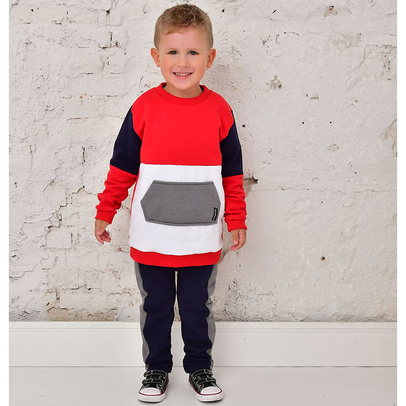 | 2 peças. Calça em Moletm, modelagem Saruel com Recortes Laterais. Blusão com Recortes Contrastantes e bolso Cangurú. Detalhes em Ribana |
