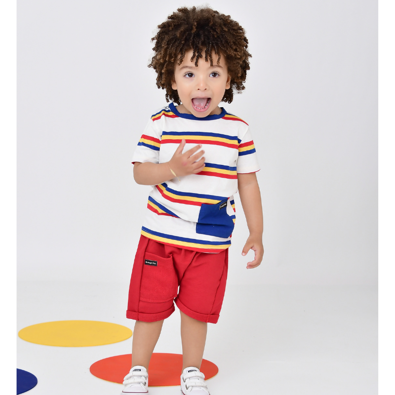Conjunto Shorts Vermelho + Blusa Multicolorida
