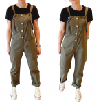 JARDINEIRA  ADULTA EM TRICOLINE VEERDE COM BOTÕES DE MADEIRA E ALÇA REGULÁVEL