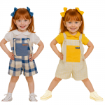 Jardineira Dupla Face Xadrez Azul + Xadrez Amarelo