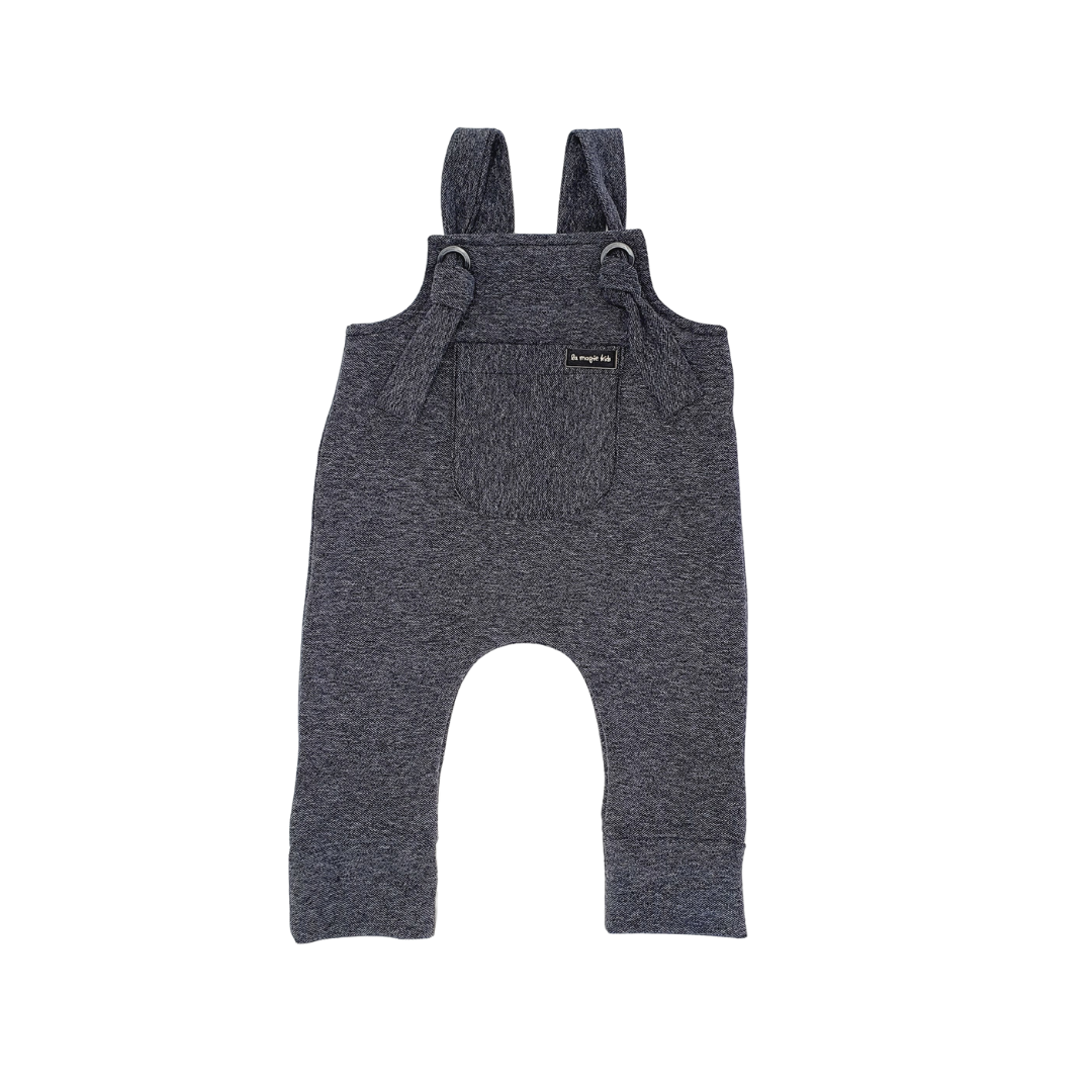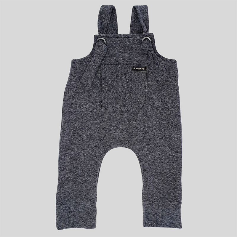 JARDINEIRA EM PICKET DE MALHA COMFY COM ALÇAS REGULÁVEIS POR ILHOS. BOLSO FRONTAL. PUNHOS NA BARRA