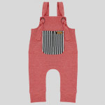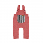 JARDINEIRA EM PICKET DE MALHA ROSA COM BOLSOS LISTRADOS. ALÇAS REGULÁVEIS POR ILHOS. BOLSO FRONTAL. PUNHOS NA BARRA
