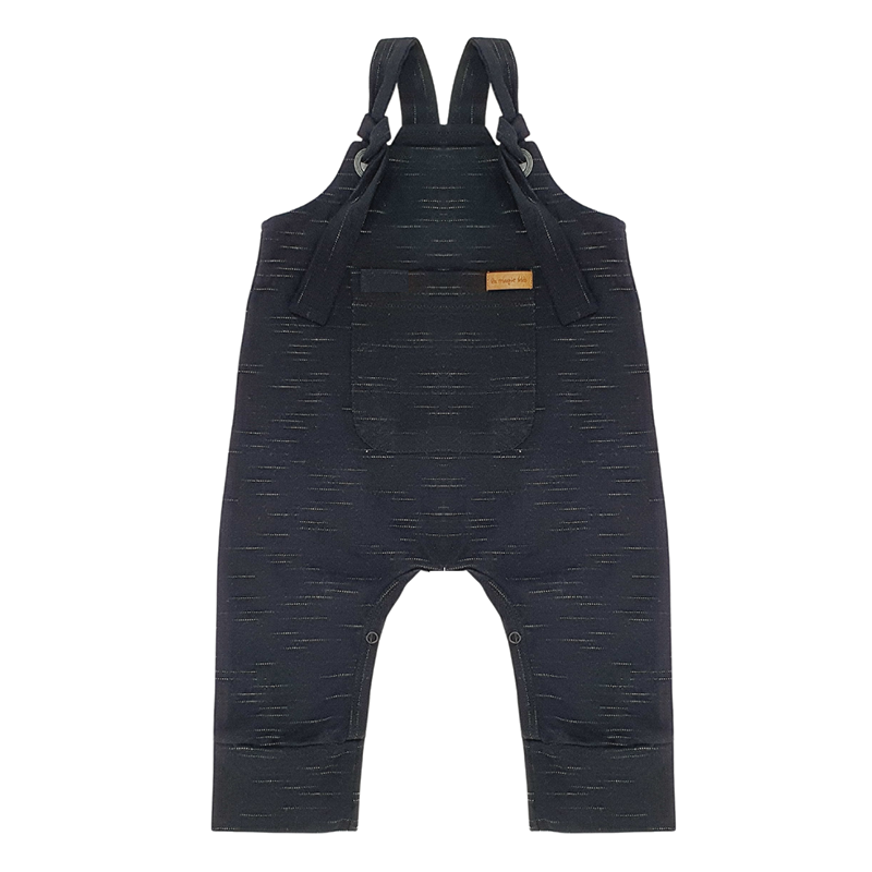 Jardineira em Picket de Algodão, com Regulagem por Ilhós e Nózinho. Abertura Entrepernas nos tamanhos P e M com botão de pressão. Alças Grandes para Acompanhar Crescimento.