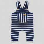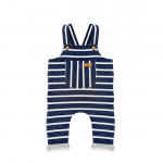 JARDINEIRA EM MOLETOM FELPUDO LISTRAS EM BLUE JEANS. ALÇAS E BOTÕES DE MADEIRA, BOLSO FRONTAL