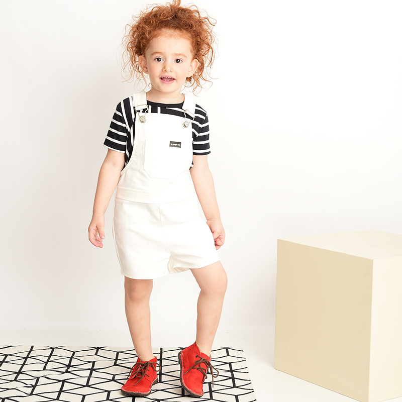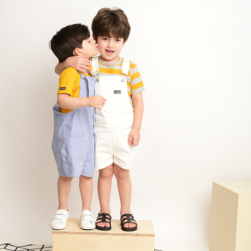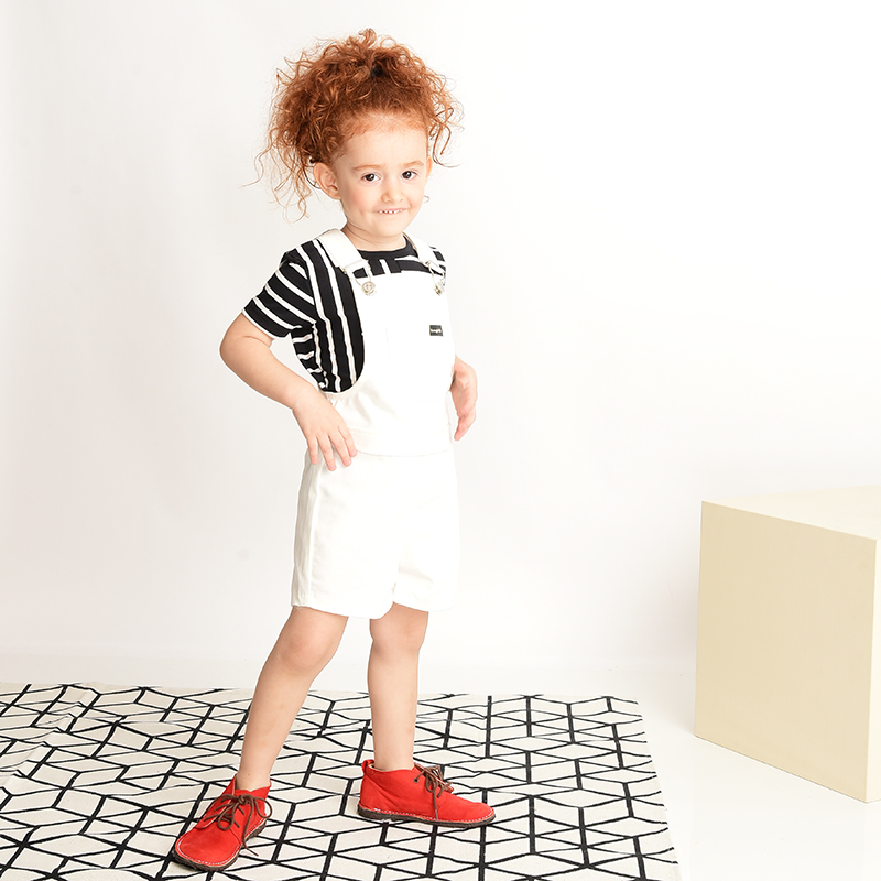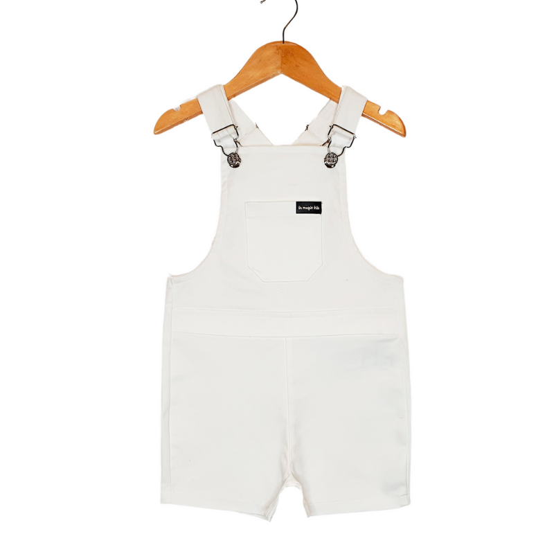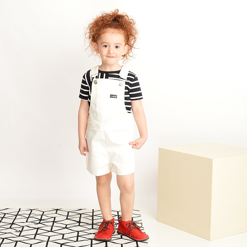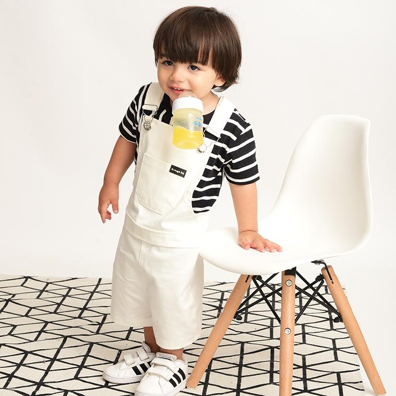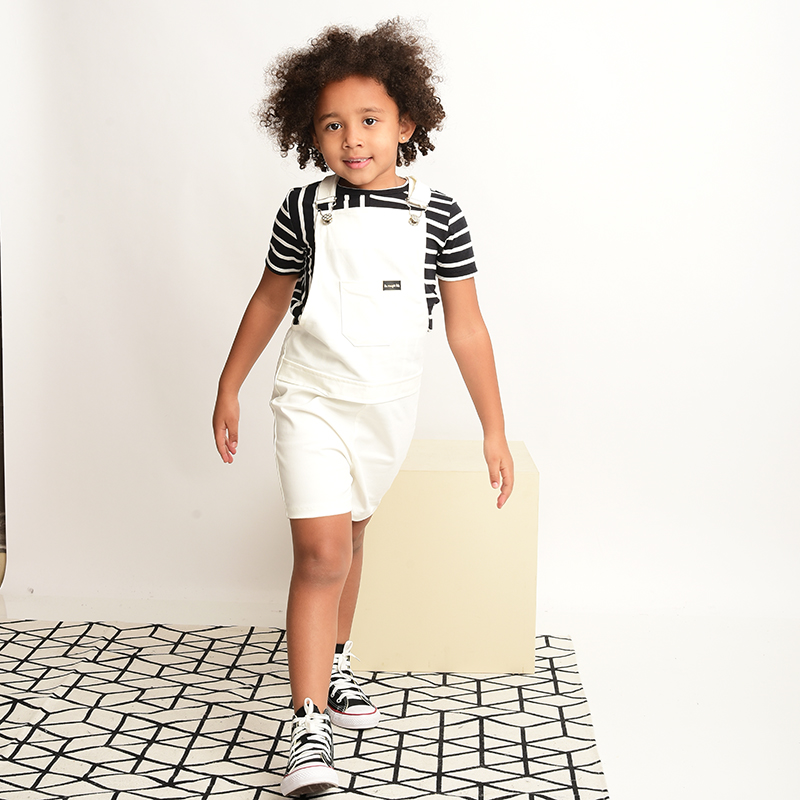 Tecido Algodão com elastano, alças e Bolsos contrastantes. Alças grandes com regulagem de jardineiras com metal que acompanham o crescimento