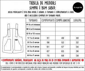 Tecido 100% Algodão, Estampa de tijolinhos, alças e Bolsos contrastantes. Alças grandes com regulagem de botões que acompanham o crescimento
