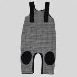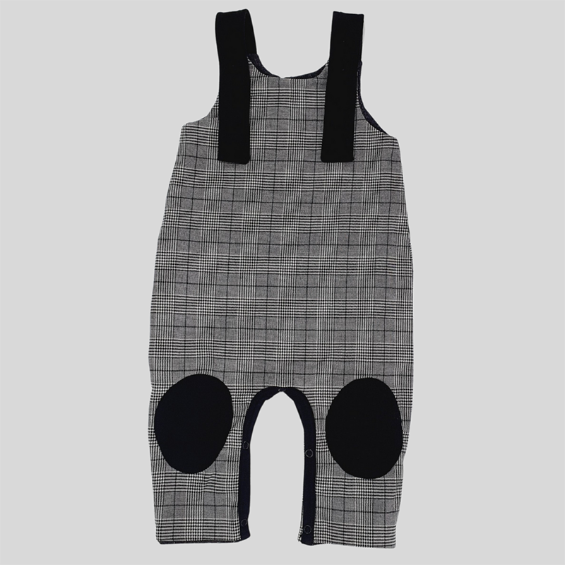 MACACÃO REVERSÍVEL: LADO 1 XADREZ CINZA COM PRETO, LADO 2 MESCLADO COM BOLSO LISTRADO