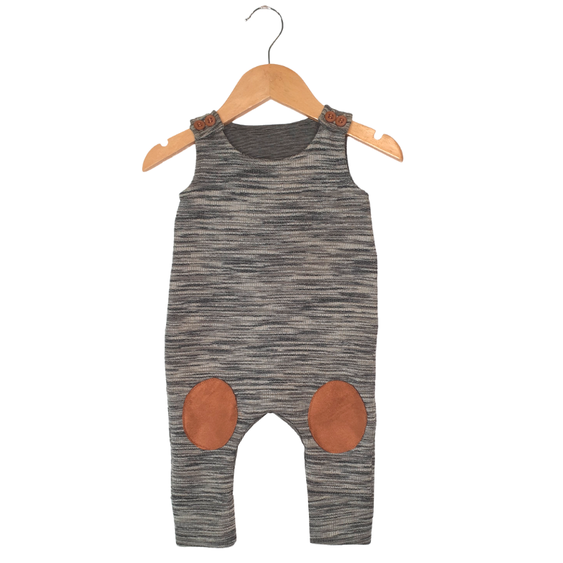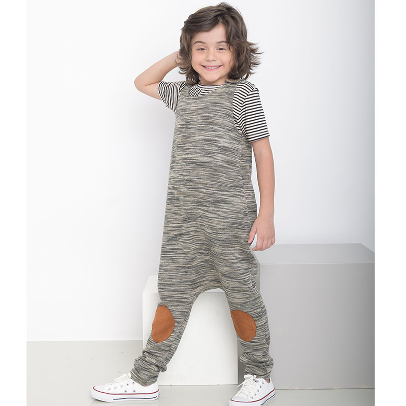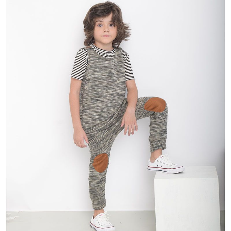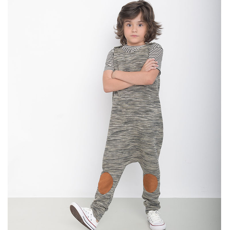 MACACÃO EM MOLETOM COM TEXTURA COM DETALHES DE JOELHEIRAS CONTRASTANTES. ABERTURA COM BOTÕES DE MADEIRA NOS OMBROS. ABERTURA COM BOTÕES DE PRESSÃO NA ENTREPERNAS NOS TAMANHOS 4A8 MESES ATÉ TAMANHO 2A3 ANOS.