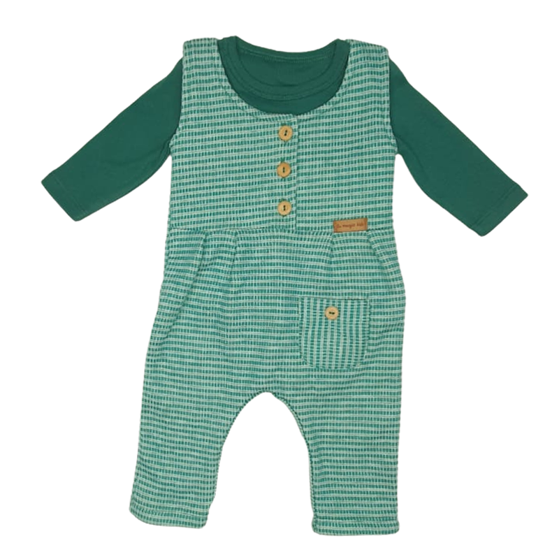Macacão em Moletom de Pelúcia “Tijolinhos” na Cor Verde. Botões de Madeira. Abertura na Entrepernas com botão de Pressão.