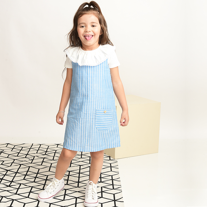 Tecido 100% Algodão Super Leve Modelagem Evasê. Abertura nos Ombros com Botões de Madeira. Bolso Frontal.