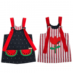 Vestido Dupla Face Poá Melancia + Listras e Flor