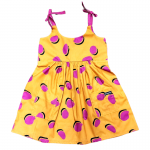 Vestido Mostarda com Bolotas Rosas